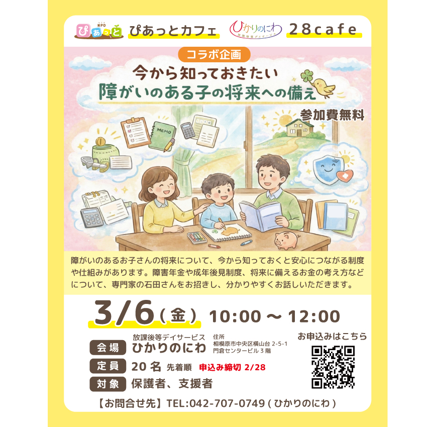 【ぴあっとカフェ・28cafeコラボ企画】今から知っておきたい障がいのある子の将来への備え|2026年3月6日開催|相模原