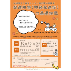 陽光園 特別講座『発達障害(神経発達症)の基礎知識 』|2025年10月16日開催【オンライン】