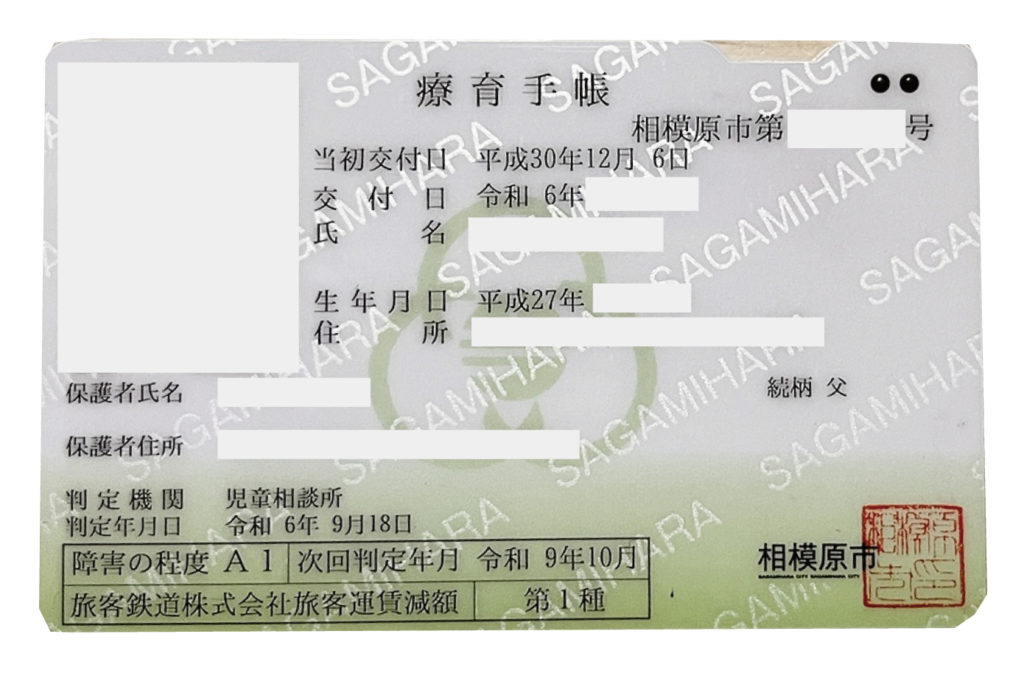 実際の相模原市の療育手帳はこちらです。紙様式とカード様式の2タイプがあり、どちらか選ぶことができます。